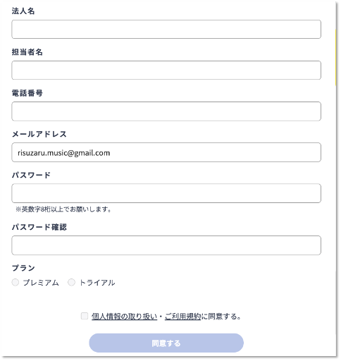 - 必要事項を入力し、プランを選択します。