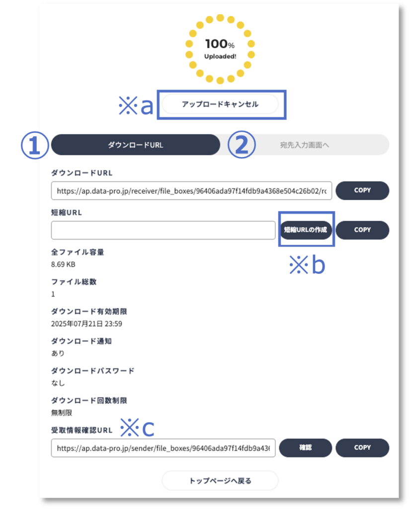 ※送信方法の選択①で作成したダウンロードURLは無効化となります。