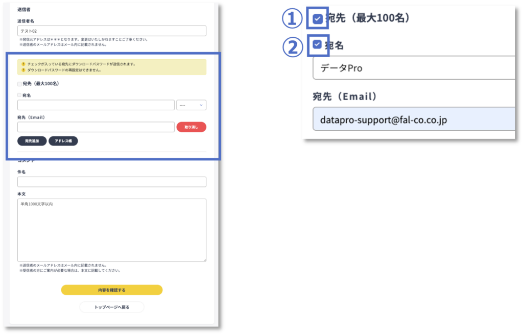 ●データProよりダウンロードパスワード通知メールを送る(宛先入力の場合)
